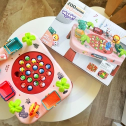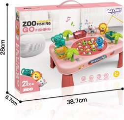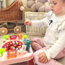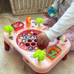 Sjovt interaktivt spil til børn fra 3 år: lyserødt WOOPIE fiskebord med roterende fisk, melodier og kurve til point. Udvikler hånd-øje-koordination, fremmer sund konkurrence og underholder hele familien. Kvalitetsforarbejdning, smukke farver og nem montering.