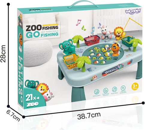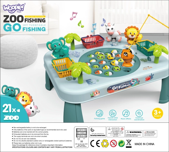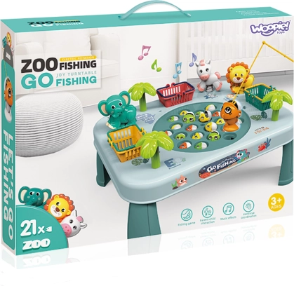 Det sjove familiespil Fiskeri fra WOOPIE giver timevis af fælles glæde. Et interaktivt bord med bevægelig spilleflade, holdbar konstruktion og farverigt design motiverer til konkurrence – fang så mange fisk som muligt, kast dem i kurvene, og tæl point. Takket være melodier og lydeffekter bliver spillet endnu sjovere.