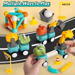 Indeholder søde dinosaurbiler, der gør legen sjovere og bringer en ny dimension i byggeri.