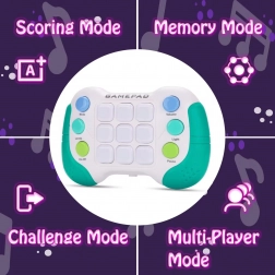 Den elektroniske POP-IT fidget gamepad WOOPIE giver børn en fængende kombination af lys, lyde og spilbarhed. Med flere tilstande træner børn hukommelse, reaktion og logik, mens den ergonomiske form og behagelige knapper styrker finmotorikken. Den solide konstruktion i holdbart ABS sikrer lang levetid.