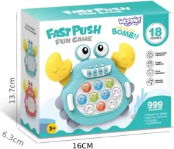 Det elektroniske legetøj Pop It Krabbe er en fantastisk måde at udvikle sind, manuel færdighed og koordination hos børn. Takket være dets kompakte design kan du tage det med overalt. Legetøjet er beregnet til børn fra 3 år og tilbyder op til 999 niveauer, som giver masser af underholdning – også for voksne.