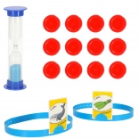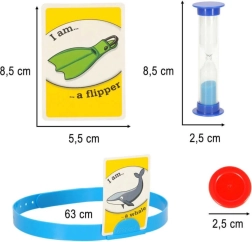 Holdbare pandebånd holder kortet behageligt på hovedet, timeglasset giver runderne tempo, og jetonerne hjælper med scoren. Det ideelle sæt til et hurtigt og spændende spil for to.