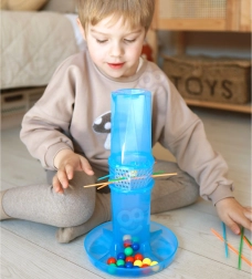 Et populært brætspil med et gennemsigtigt tårn, farvede pinde og kugler. Hvert træk tæller – træk den rigtige pind og hold kuglerne øverst. Spillet er ideelt til børn fra 3 år og voksne, har hurtige og nemme regler og holder til hyppig leg takket være den robuste plastkonstruktion.