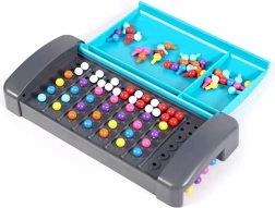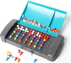 Kodeskaberen skjuler en kombination af farvede pinde, mens modstanderen forsøger at afsløre den ved hjælp af smarte gæt og vejledende pins. Enkle regler, hurtige runder og nem opbevaring af delene i den lukkelige boks gør dette spil ideelt til rejsen.