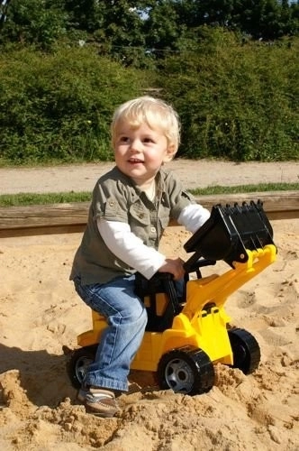 Børnelæsser Lena i sort-gul udførelse lavet af højkvalitets plast, der opfylder europæiske standarder. Udstyret med en bevægelig arm med læsser skovl, hvilket giver god underholdning til børn.