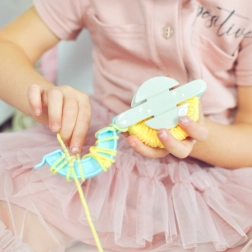 Sættet indeholder et specielt pompom-værktøj, der sikrer hurtig og enkel fremstilling.