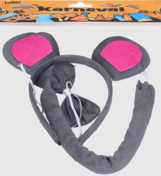 Sødt karnevalssæt mus til børn og unge. Sættet indeholder ører på hårbøjle, sløjfe om halsen og hale – bare tag det på, og du er klar til karneval, fest eller skolearrangement.