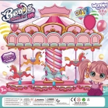 Sættet er pakket i en farverig æske, der forestiller en karrusel, hvilket gør det ideelt som gave. Efter udpakning er sættet let at transportere – let og kompakt, så barnet nemt kan tage det med i børnehave, til en ven eller i haven. Emballagen fungerer også som en organizer til sikker opbevaring af de små dele i sættet.