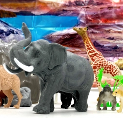 - 34 dele inklusive dyr, tilbehør (træer, sten) og et tematisk safari-kort.