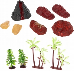 Et varieret sæt af dinosaurer, træer, sten og lava gør det muligt at bygge detaljerede scener og lære artsnavne på en sjov måde.