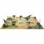 Det farverige underlag med ruter og attraktioner skaber straks et miljø, hvor børn kan lege med historier fra dinosaurernes tid og udvider legemulighederne.