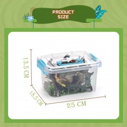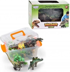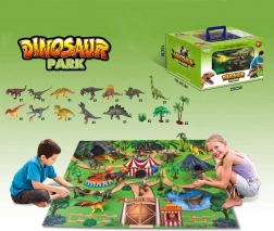 Pakkens indhold: 12 dinosaurfigurer, 10 plante-/træfigurer, blød legemåtte, transportkuffert.
