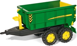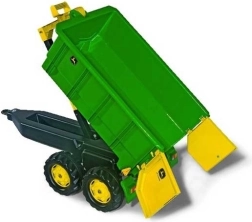 Den robuste børnetrailer med JOHN DEERE-licens er et fantastisk tilbehør til alle pedaltraktorer fra Rolly Toys. Den byder på en stor tippelad, åbningsbar bagklap og toakslet udførelse for stabilitet. Fremstillet af slidstærk plast for lang levetid og intensiv leg. Kompatibel med alle Rolly Toys traktorer med anhængertræk.