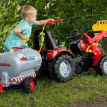 Vandtank trailer Rolly Toys giver børn mulighed for at fylde tanken med vand og med sprøjten og håndpumpen vande eller rengøre haven og indkørslen. Med en kapacitet på 30 liter giver den rigeligt med vand til mange timers leg.