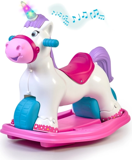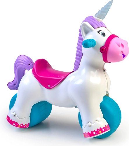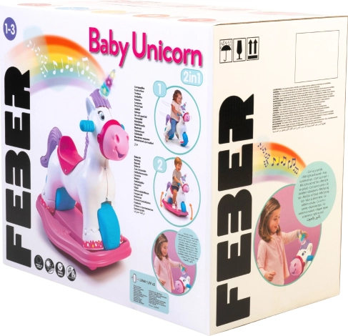 Opdag den søde enhjørning fra FEBER – 2-i-1 gynge og gåbil til de mindste. Takket være den stabile konstruktion, lys- og lydeffekter og det komfortable sæde giver den timevis af sjov og understøtter udviklingen af motorik og koordination hos børn fra 12 måneder.