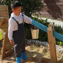 Denne balancevægt til sandkassen giver børn uendelige muligheder for opdagelse og leg gennem forsøg og fejl. Børn fylder metalspandene med forskellige materialer og ser, hvordan balancen ændrer sig – det fremmer forståelsen af grundlæggende fysik, logisk tænkning og tålmodighed.