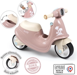 Pink scooter fra det anerkendte mærke Smoby er et sødt retro køretøj på to hjul, ideelt til små børn. Det er et udviklende legetøj, der fremmer barnets balance, styrke og kondition.