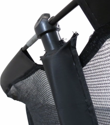 Det beskyttende net omslutter hele trampolinen og giver takket være lynlåsen nem ind- og udgang, samtidig med at det pålideligt forhindrer fald under leg og øvelse af tricks.