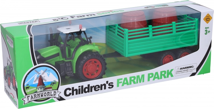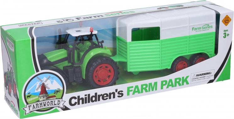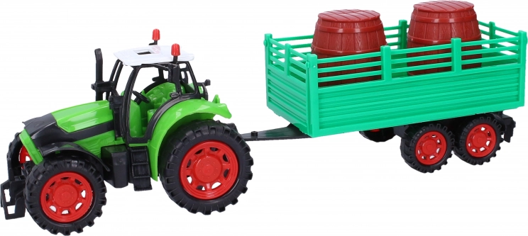 Traktor med trailer 35 cm med friktionsdrev. Holdbart børnelegetøj til små landmænd fra 3 år. Perfekt til kreativ leg på gården.