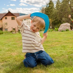 Afrundede kanter og en glat overflade giver børn tryghed ved både kast og grib. Perfekt til de første forsøg med en boomerang allerede fra 3 år.