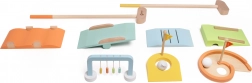Dette kvalitetstræ-minigolf-sæt er fremstillet af giftfri og holdbar træ. Takket være den nemme opsætning kan du spille hvor som helst – i stuen, børneværelset eller i haven. De farverige forhindringer og enkle regler begejstrer både begyndere og små sportsudøvere.