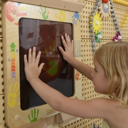 - Interaktiv underholdning: Børn kan følge og sammenligne aftryk, der dannes på tavlen. Der kan tegnes striber og mønstre.
