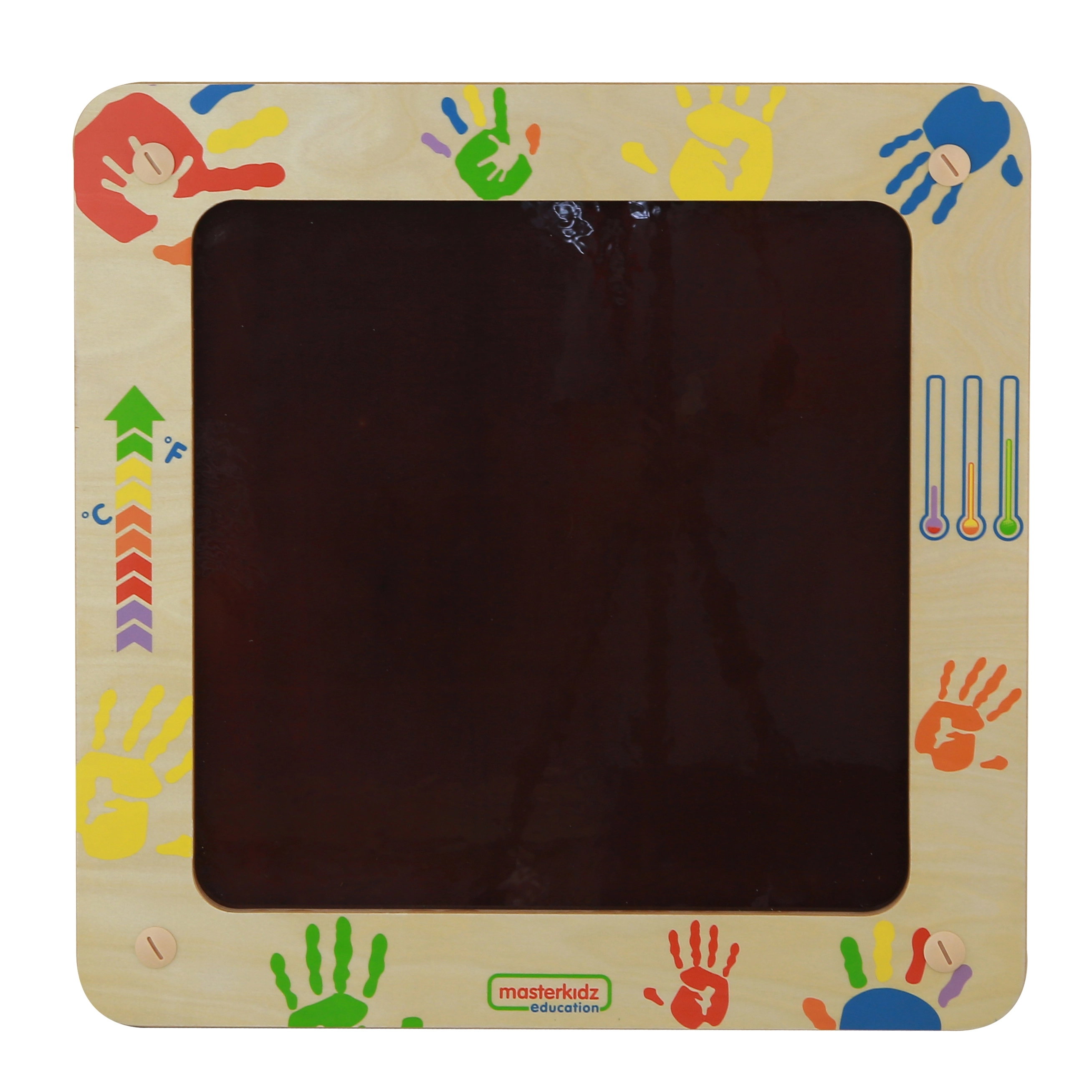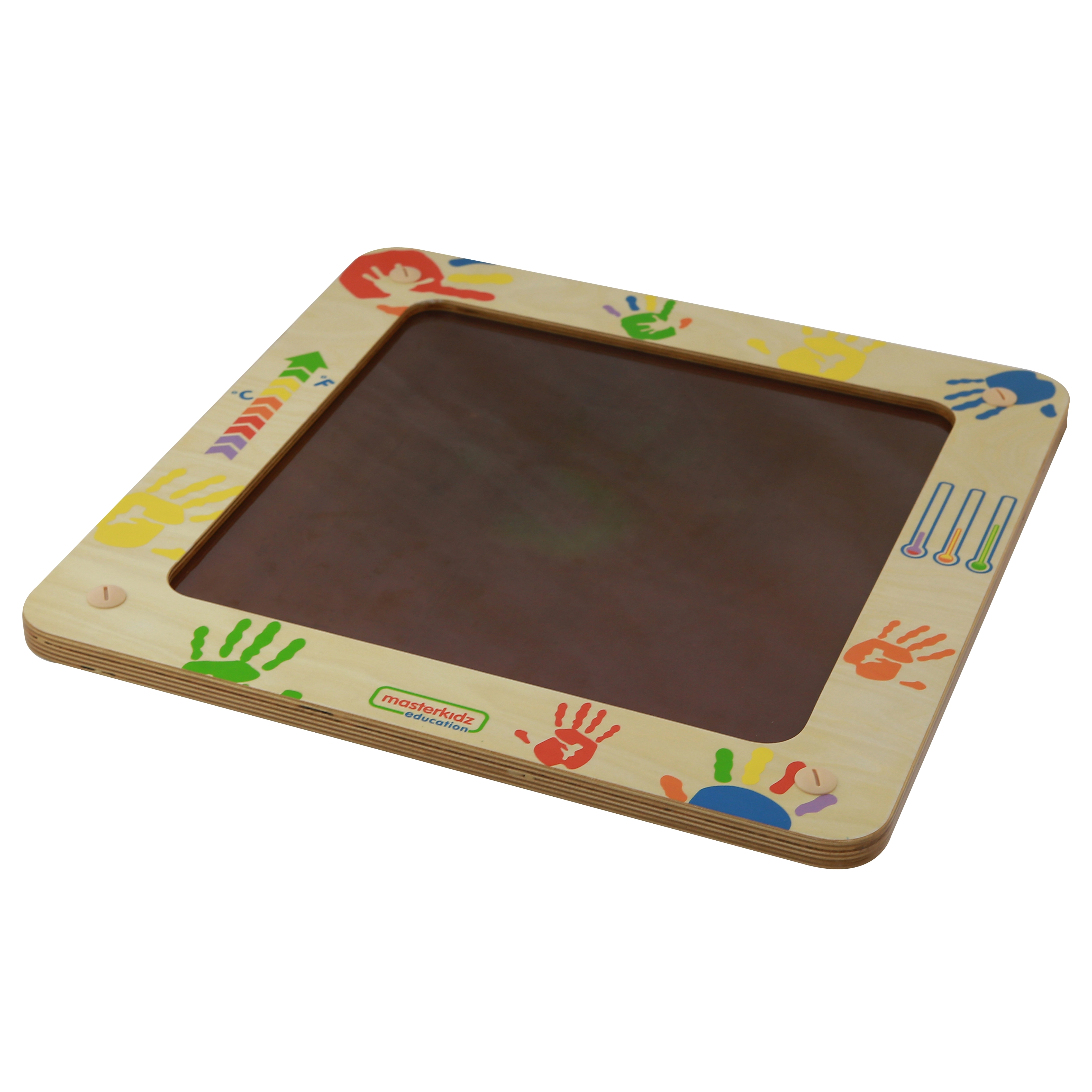 Masterkidz-tavlen er et unikt, pædagogisk legetøj, der lader børn observere farveændringer på overfladen ved hjælp af varmen fra deres hænder eller fingre. Det er en fantastisk måde for børn at lære om temperatur og den menneskelige krop.