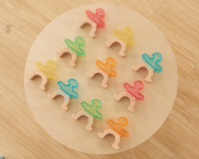 Uden skarpe kanter og med en overflade behandlet med ikke-giftige farver ligger figurerne behageligt i barnehånden og tåler daglig leg. Legen udvikler naturligt tålmodighed, logik og kreativitet og motiverer børn til at eksperimentere og samarbejde.