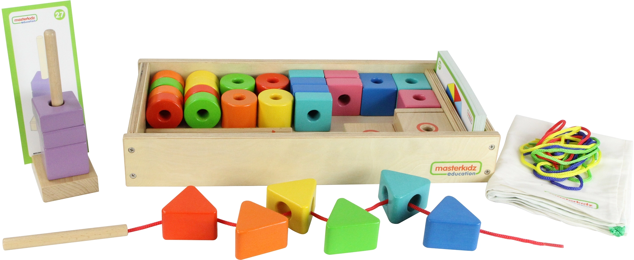 Snøresæt fra Masterkidz indeholder forskellige, farverige perler og snore. Det er et af 3 tilgængelige snøresæt fra Masterkidz. Det kan frit kombineres med de to andre sæt for endnu mere spændende og varieret leg.