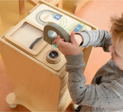 - Sikker udførelse: massivt træ, indbyggede elementer, ingen løse smådele.