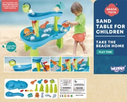 Vandbordet Blæksprutte fra mærket WOOPIE giver en unik oplevelse med vand og sand for børn. Med 18 tilbehør som 3 forme, en blæksprutte, en kande, en kurv, en sandopsamler og 2 skovle, kan børn nyde uendelige legemuligheder. Vand, der hældes i den øverste del af bordet, kan løbe gennem huller i bunden eller dreje vandmøller. Perfekt til både indendørs og udendørs leg!