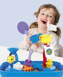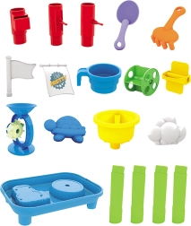 Indeholder alle nødvendige værktøjer til kreativ leg med sand og vand - forme, river, skovle og mere.