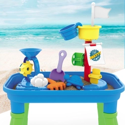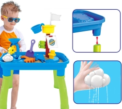 Kombinerer spillebord med vand og sand i et produkt, hvilket muliggør forskellige legeaktiviteter.
