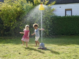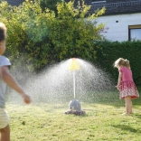 Sprinklerhatten skyder vand, hvilket skaber en spektakulær visuel forestilling og sikrer forfriskning selv på de varmeste dage.