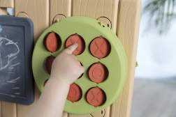 Smoby aktivitetsvæg er et fremragende legetøj, der giver børn timevis af sjov og samtidig hjælper med at udvikle deres motoriske færdigheder, kreativitet og logiske tænkning. Produktet er fremstillet af 84% genanvendt plast, hvilket gør det til et miljøvenligt valg. Væggen tilbyder 6 forskellige aktiviteter og op til 29 tilbehørsdele, som kan sikre endeløs underholdning i haven, på terrassen eller på børneværelset.