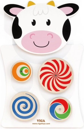 VIGA træ-Montessori bræt Ko med drejeskiver. Udvikler motorik, logisk tænkning og sansning. Sikker maling, FSC-træ.