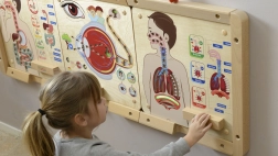 Tavlen støtter læring om vejrtrækningsprocessen gennem leg, forklarer de forskellige faser og lader børnene interaktivt lære systemet at kende.