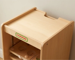 Suppleret med hjul med lås kan skabet nemt flyttes mellem stuer eller legekroge og står stabilt, når bremsen er slået til. Toppladen fungerer som en praktisk flade til øjeblikkelig brug af tavlen – på ingen tid skaber du et mobilt center for læring og leg.