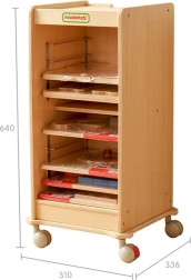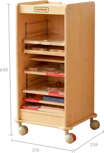 Dette robuste træskab er designet specielt til overskuelig og sikker opbevaring af håndholdte læringstavler fra MASTERKIDZ. Med kapacitet på op til 10 stk. i formatet 28 × 28 cm holder det materialerne på plads, effektiviserer aktivitetsforberedelsen og lærer børn systematik.