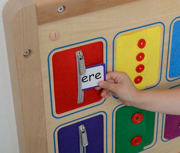 Denne kvalitets træbaserede læringstavle giver børn et sikkert rum til at øve virkelige lukkemekanismer. Hver af de 6 horisontale lommer repræsenterer en anden type lukning kendt fra jakker, trøjer eller skjorter, så børn lærer færdigheder, de bruger hver dag.