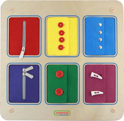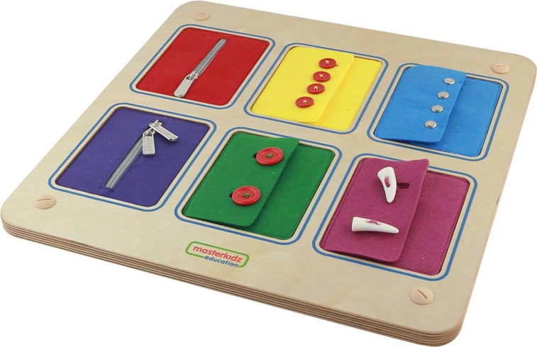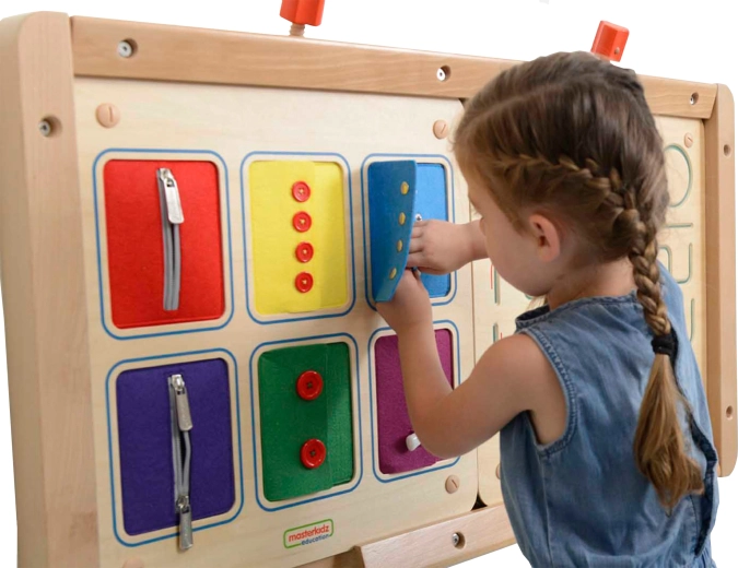 Væghængt Montessori-tavle til lukninger – lynlåse, knapper og trykknapper MASTERKIDZ