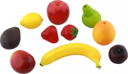 Hvert frugtstykke er detaljeret udført, så farver og overflade minder om rigtige frugter – ideelt til både læring og leg.