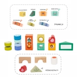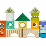 Takket være den robuste træramme er klodserne nemme at lægge på plads og altid klar til endnu en runde kreativ leg. Miljøvenlig produktion og ikke-giftige farver sikrer sikkerhed og bæredygtig materialekilde.