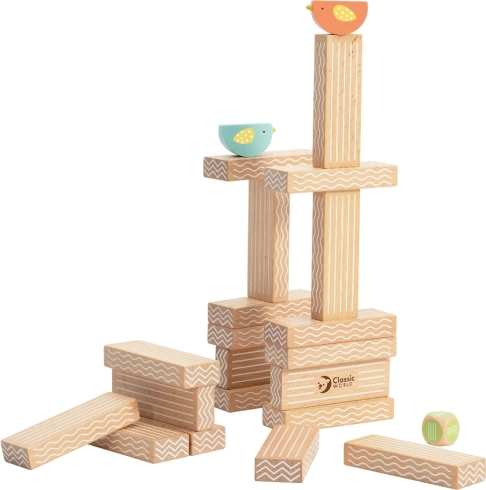 Stabling af klodser og balancering af fugle træner finmotorik, hånd-øje-koordination og logisk tænkning på en legende måde.