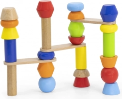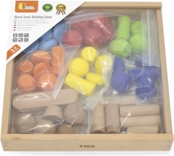 Træ geometriske byggesæt fra mærket VIGA kombinerer traditionelle former med moderne farver, der hjælper børn med at opdage nye udfordringer. Barnet lærer at genkende forskellige størrelser, former, og farver, hvilket stimulerer deres kreativitet og logiske tænkning.