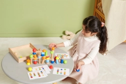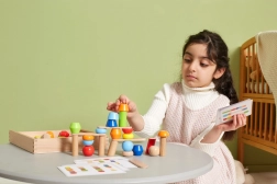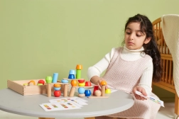 Med disse træbyggesæt kan børn bygge fantastiske tårne i henhold til kort eller deres egen fantasi. Legetøjet understøtter balance, praktiske færdigheder, fantasi og logisk tænkning.