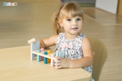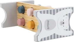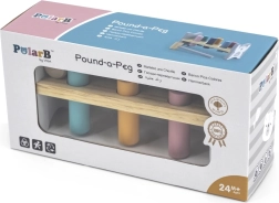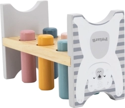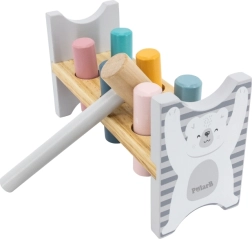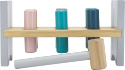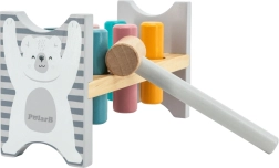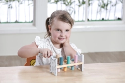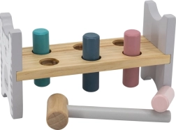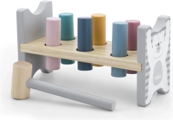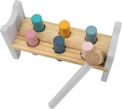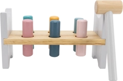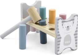 Farverig træbænk fra VIGA er designet til at engagere og udvikle børns koordination. Hovedopgaven er at hamre de enkelte pinde gennem hullerne, hvilket børn synes er sjovt samtidig med det træner deres motoriske færdigheder.