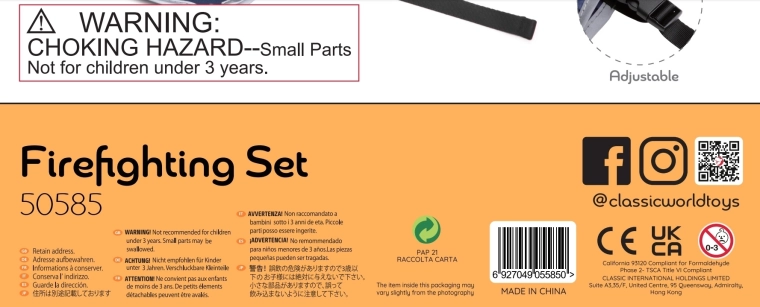 Sættet indeholder alle nødvendige redskaber som brandslukker, økse, megafon og mere, der giver mange timers sjov og læring.