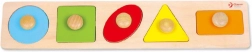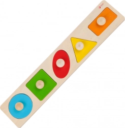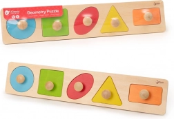 Træpuslespil Classic World er designet til børn fra 12 måneder. Dette legetøj indeholder en plade med udskårne former og 6 stykker med brikkerne, der passer til formerne på pladen. Alle brikker er let at gribe takket være små brikker.