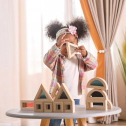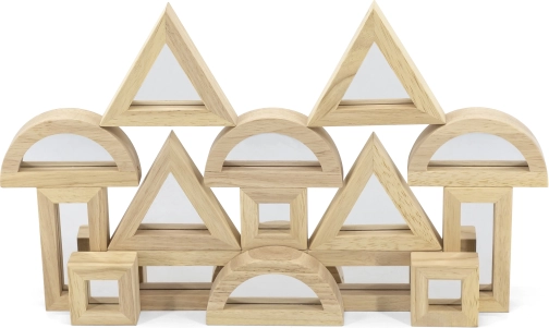 Sæt med 16 dele i rektangler, kvadrater, ligesidede trekanter og halvcirkler. Spejlfladerne indbyder til udforskning og styrker selverkendelse under legen.